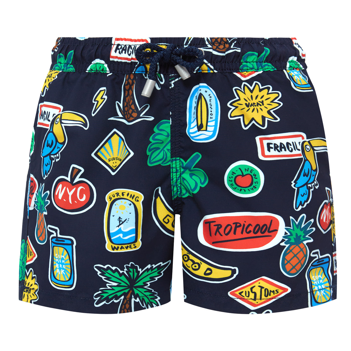 Arthus Boy is the kid's version of our classic signature men's swim short. Presented in a range of vibrant colour ways and tropical patterns, this pair of shorts will paint the most fashionable of Father-Son portraits.