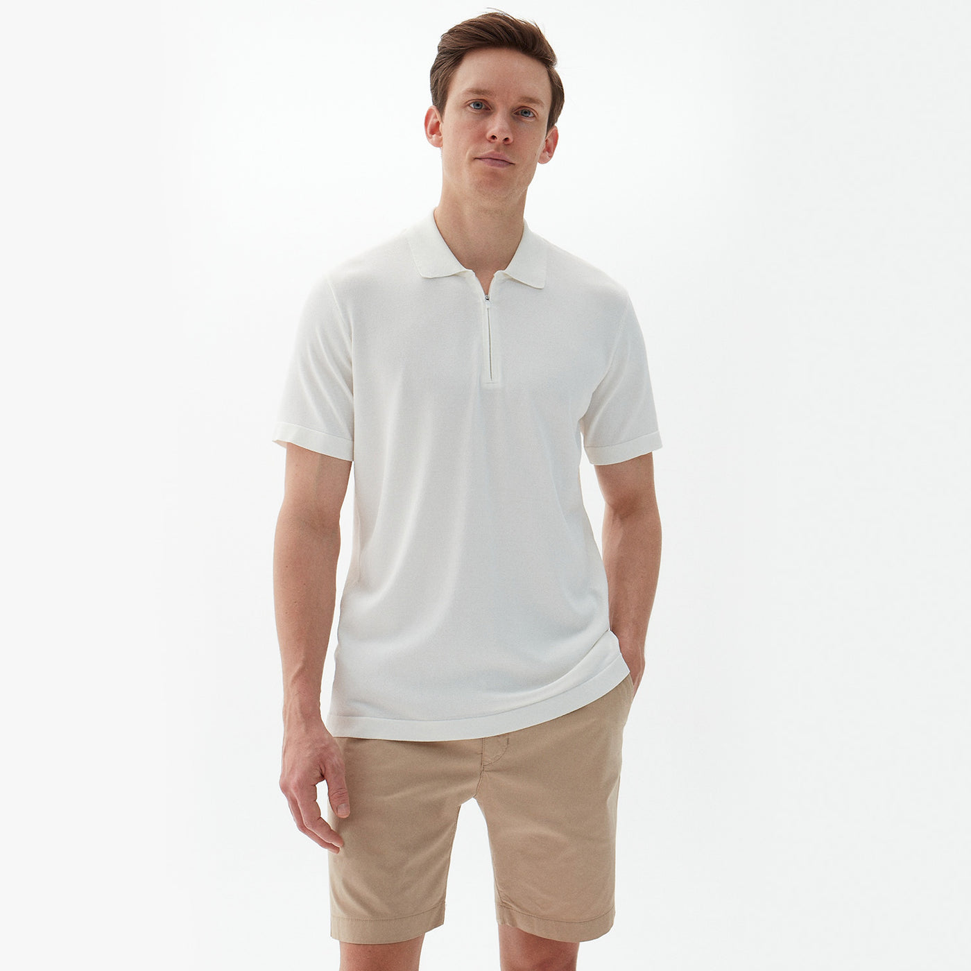A contemporary take on the classic polo shirt. Devon Polo Shirt is a knitted, vintage-inspired piece with modern zip detailing. Its knitted fabric and zip-up detail add a smart feel to the casual classic polo shirt.