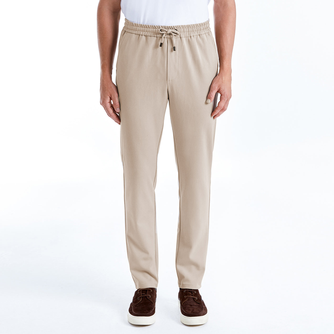 Comfort comes stylishly with the Jogger sweatpants. Super soft to touch with a hint of stretch - movability is key and essential. Two side slip pockets, an elasticated waistband and drawstring fastening allow for ultimate comfort. A tapered leg gives a sliming look to these pants, laid back luxe has never been easier to achieve.