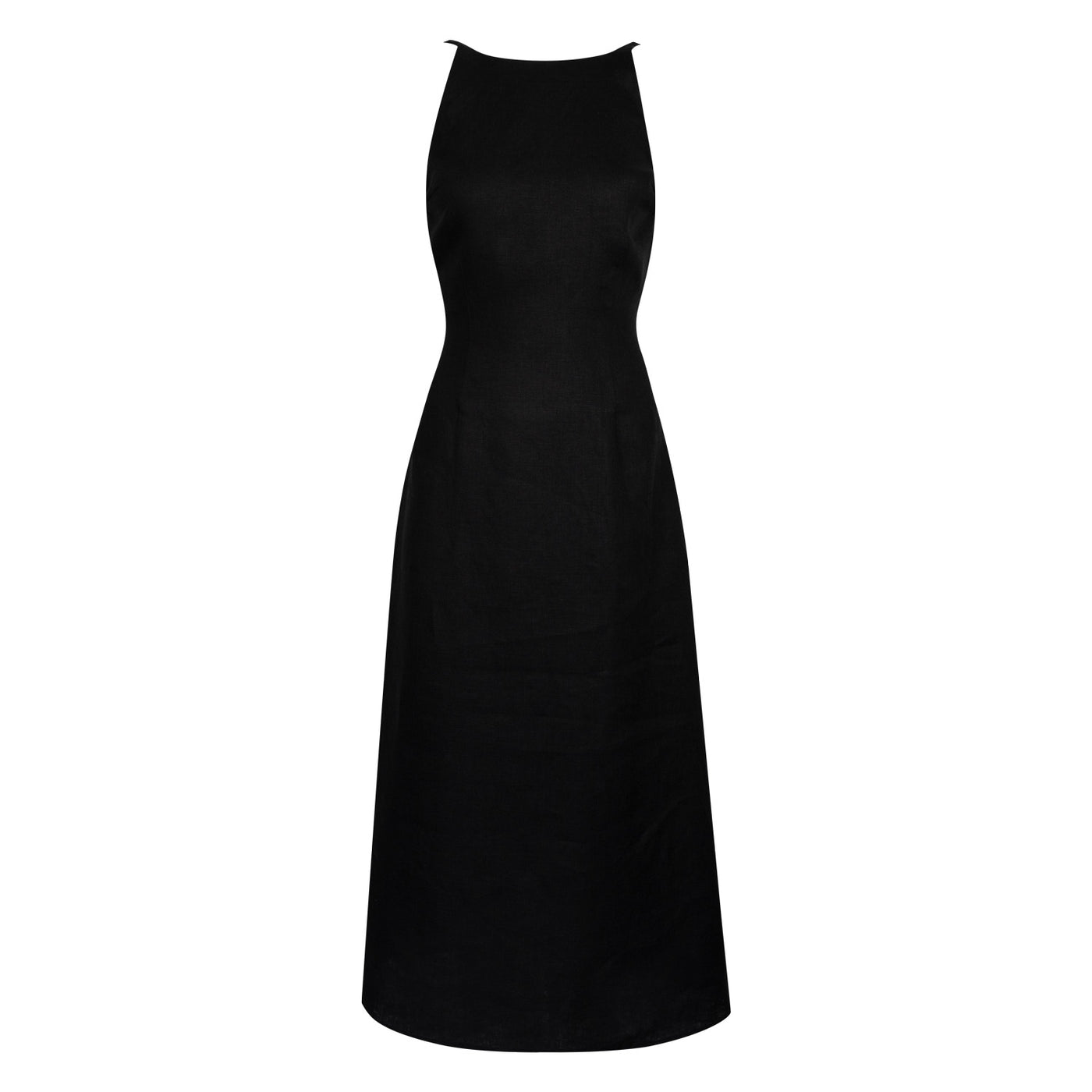 Laure features an elegant back detail and minimalist design, made from natural linen for all-day comfort. Adjustable thin straps ensure a tailored fit, while its midi length and clean silhouette make it a timeless summer piece.