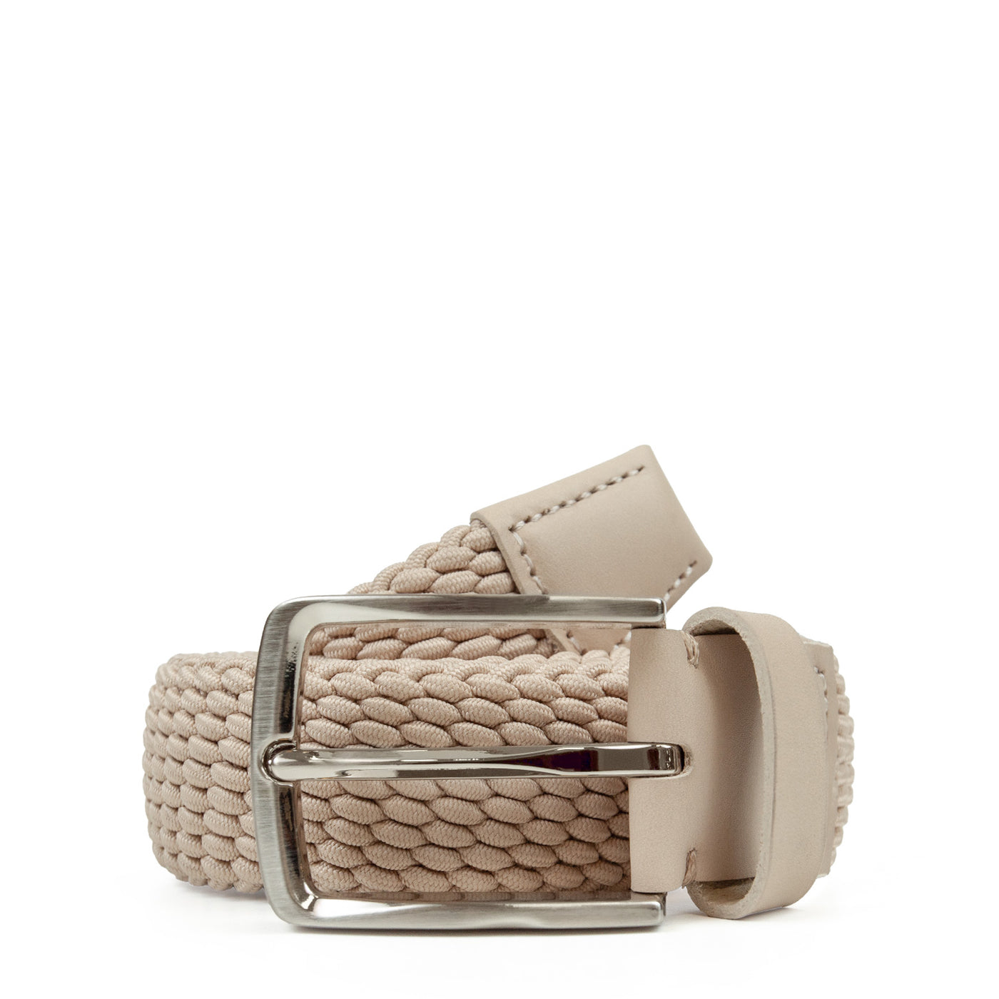 Leather-Trimmed Woven Elastic Belt