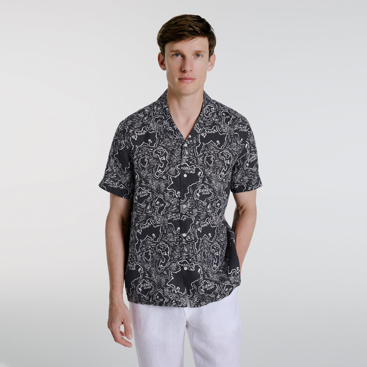 Mars is made with a contemporary twist on the classic bowling shirt. This trans-seasonal button-down shirt is made of lightweight, soft-to-the-touch linen and features a point collar and a traditional straight comfort fit.