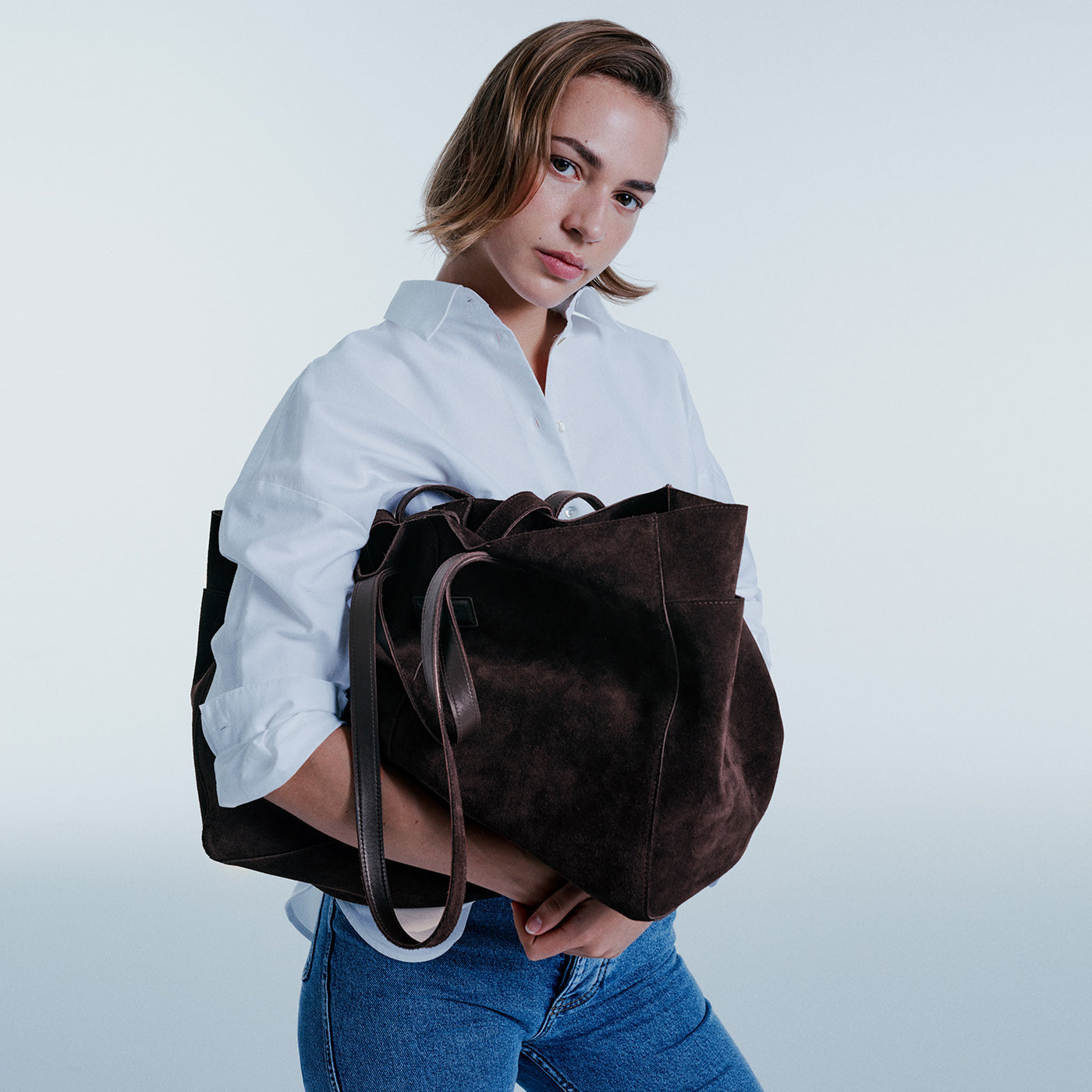 Double fixed top handles and shoulder straps