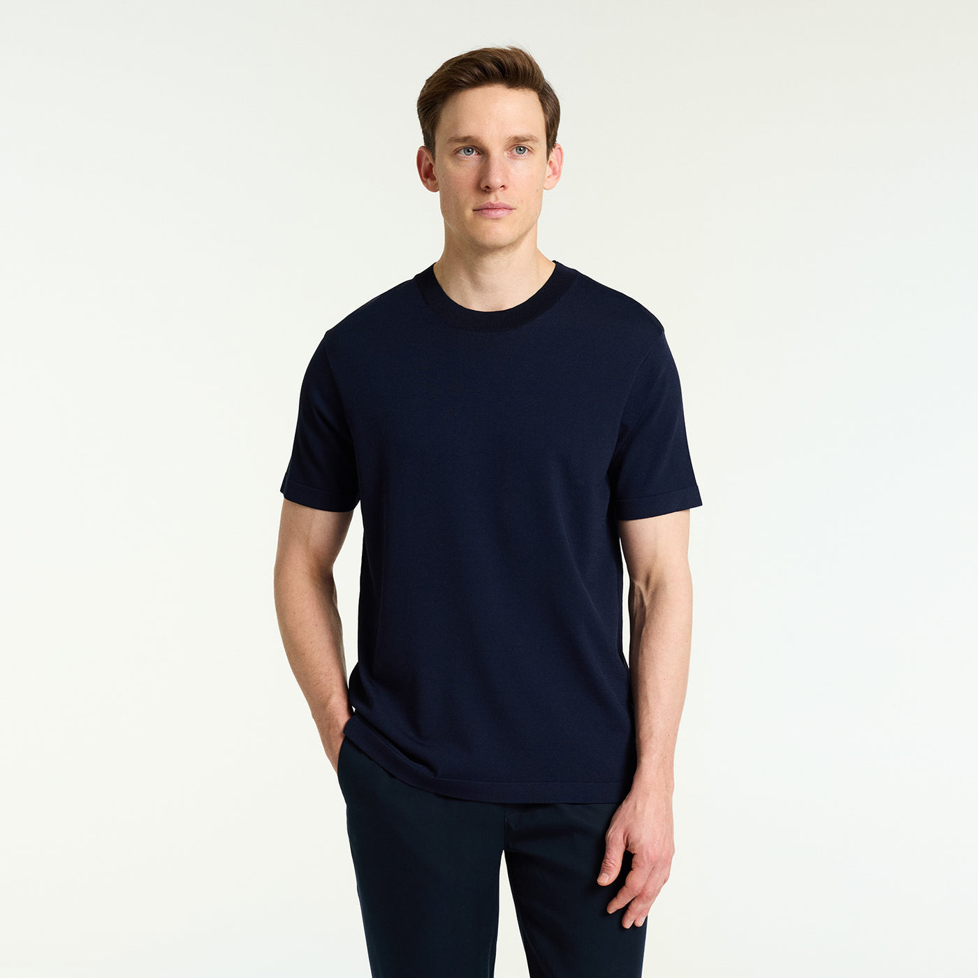 The Theo T-Shirt is a fresh addition to Bluemint’s collection. Crafted from a blend of premium Rayon and Polyamide, this knit t-shirt features a relaxed fit and a minimalist crew neck, making it the perfect staple for both summer evenings and office days. Its soft texture and versatile style ensure it pairs effortlessly with any outfit.